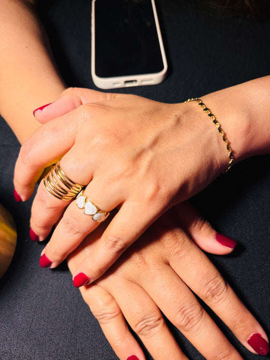 DVASSA pieces are made with high-quality stainless steel and coated with 18k gold PVD plating. This combination ensures durability, making your jewelry resistant to water, sweat, and everyday wear. You can confidently wear our pieces while washing hands, during workouts, or even on vacation.